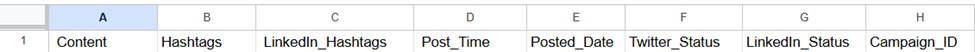 For the automation to work, your google sheets should look like this. This is the top row of your sheets, making it an ideal n8n tool for social media managers.
